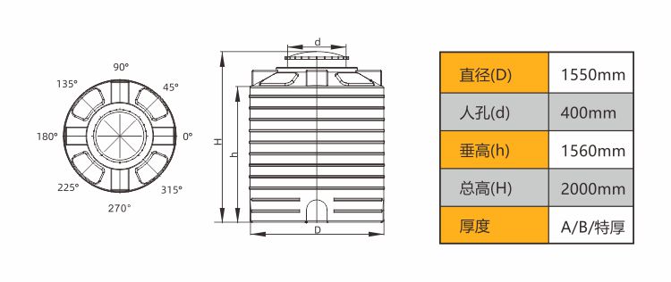 2.结构:桶身采用圆柱结构,底部椎体,美观坚固。对各类酸、碱、盐具有极佳抗腐蚀性。